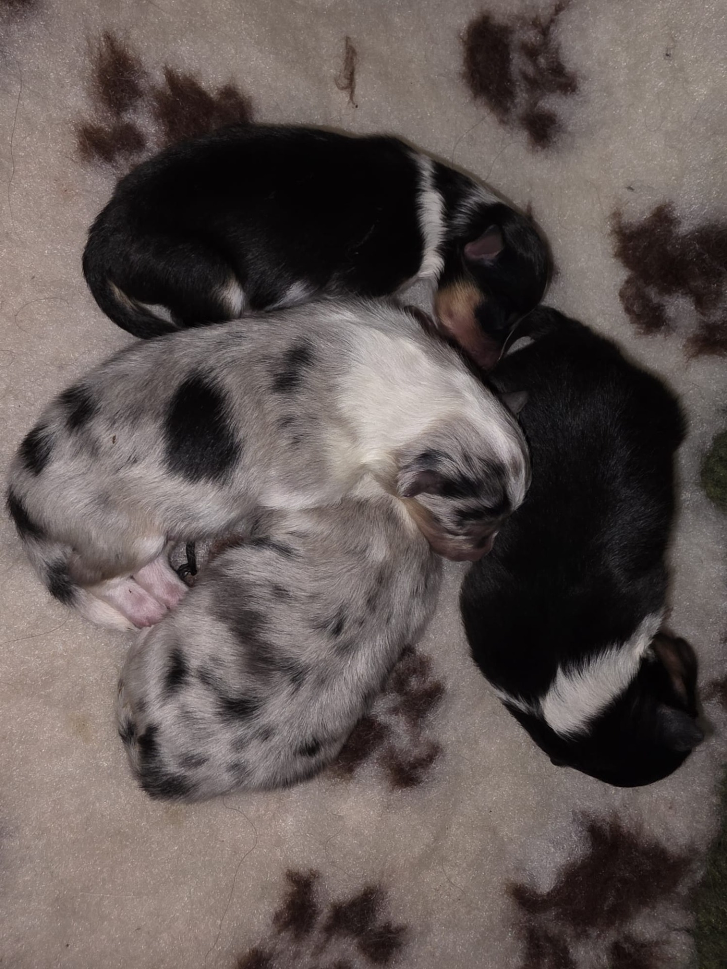 Da har "Cass" og Gunnsita blitt foreldre til 4 flotte valper. 1 Blue Merle tispe, 1 Blue Merle han, 1 tricolor tispe og til slutt en tric han. Alle 5 har det bra
